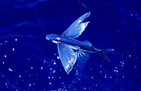 Є ще літаючий кальмар. Він набирає воду у мантійну порожнину, а потім різко викидає струмінь через круглу лійку, стартуючи з води зі швидкістю 55 км на годину. У такий спосіб кальмар пролітає в повітрі понад 50 метрів, сягаючи висоти 4–5 метрів. І риби також літають. Вистрибуючи з води, вони використовують великі плавці для планерування, а хвіст забезпечує їм поступальний рух і розгін перед стрибком із води. У „літаючих оселедців” хвіст здійснює приблизно 50 рухів за секунду, а швидкість польоту досягає 80–90 км/год. Урятувавшись від хижака під водою, ці рибки часто потрапляють на обід птахам. А ще можуть потішити моряків, приземлившись на палубу.