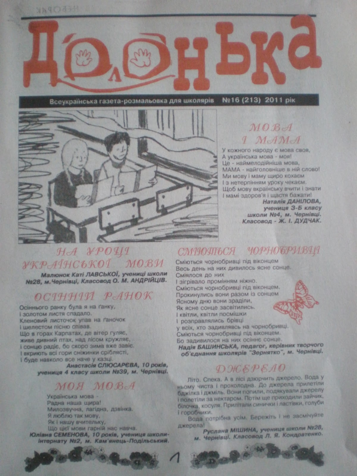 Ми продовжуємо представляти таланти 4 - В класу. Нещодавно у газеті "Долонька" було надруковано оповідання нашої Валерії. Пропонуємо всім ознайомитися з ним.